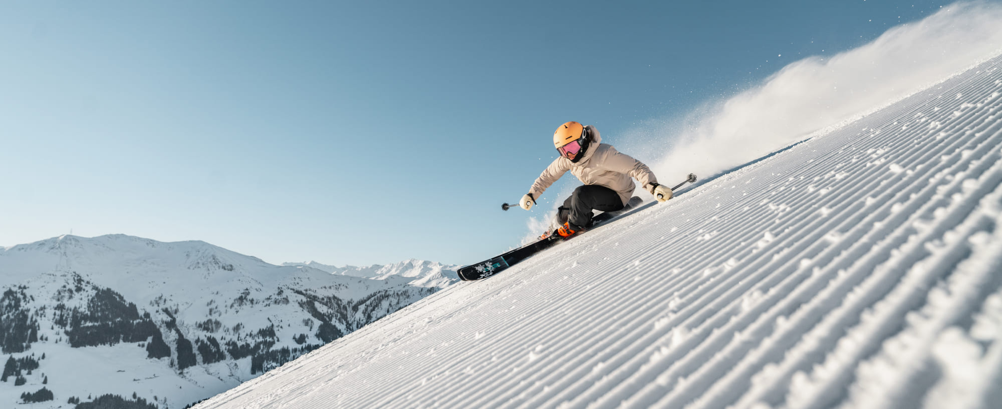 Direct vanaf het Alpine Palace met de ski's op de piste: ervaar ski-in, ski-out op het hoogste niveau – of het nu op de spectaculaire wereldbekerpistes is of door verse diepe sneeuw. Voel de snelheid, geniet van de vrijheid – en voel je als een professional.